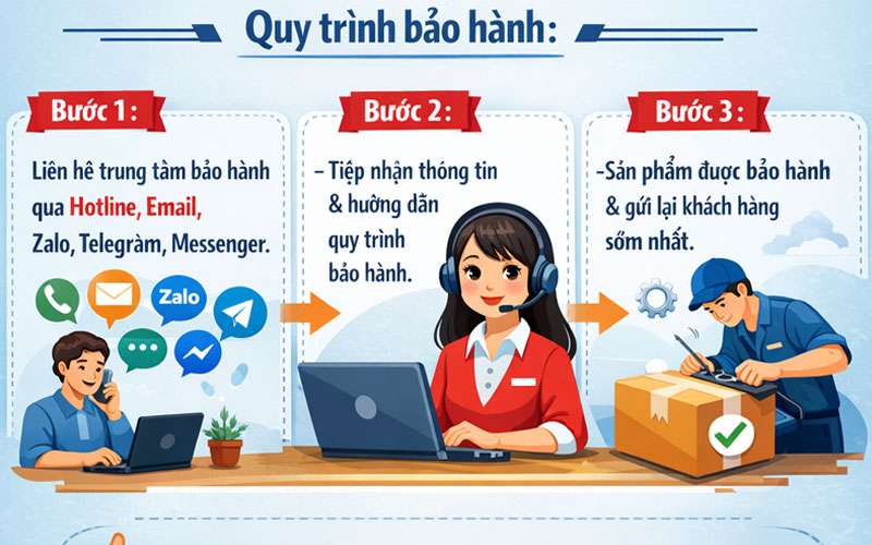 ----- ➠ Bước 3: Sản phẩm sẽ được bảo hành và gửi lại khách hàng trong thời gian sớm nhất.