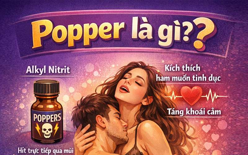 Popper là hợp chất sinh học alkyl nitrit hít trực tiếp qua mũi ( khứu giác) tạo cảm giác hưng phấn, kích thích ham muốn tình dục, tăng khoái cảm trong quan hệ tình dục. Giúp thư giãn cơ bắp, giảm căng thẳng, sảng khoái cơ thể.