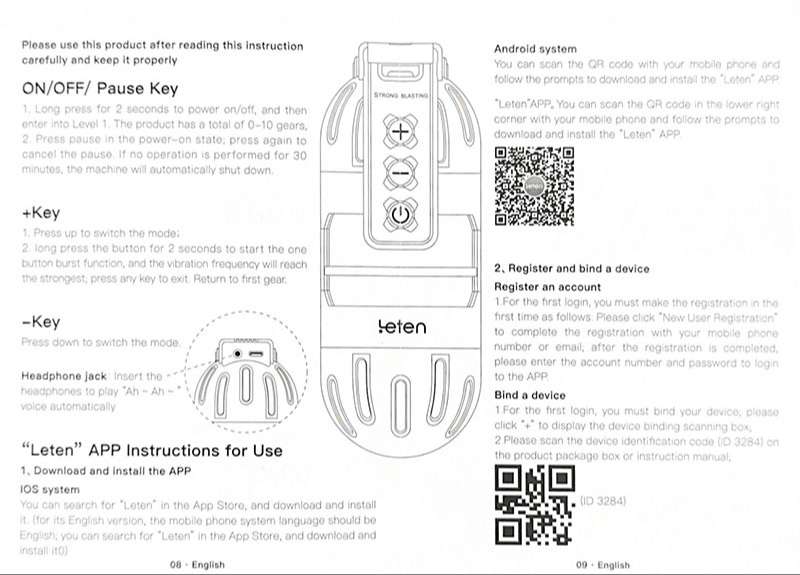 Kết Nối Bluetooth: Kích hoạt Bluetooth trên điện thoại của bạn. Mở ứng dụng Leten và làm theo hướng dẫn để kết nối với sản phẩm. Đảm bảo rằng sản phẩm đang ở chế độ bật và trong phạm vi kết nối của Bluetooth.