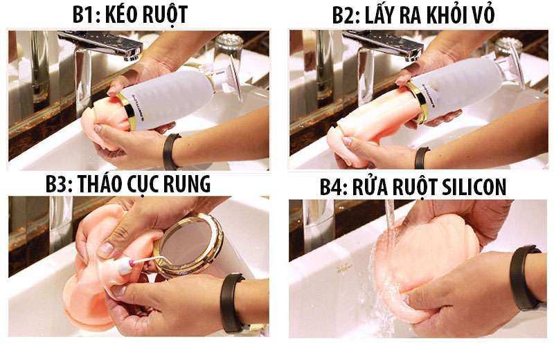 - Sau khi sử dụng xong: tháo phần âm đạo, rửa sạch với nước và để khô, sau đó mới cất vào vỏ cho lần sử dụng sau