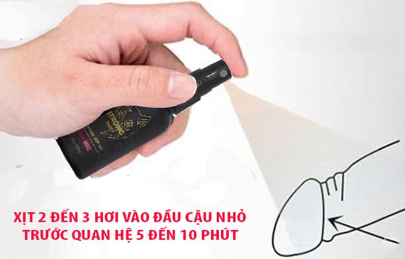+ Lắc nhẹ, xịt lên đầu dương vật trước khi quan hệ từ 5-10 phút để có hiêu quả tốt nhất, tùy sức khỏe của mình mà điều chỉnh lượng thuốc xịt (có thể xịt 2 - 3 lần).