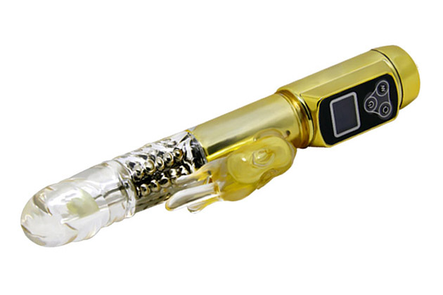 Dương vật giả giá rẻ LCD mới năm 2014 là sản phẩm đồ chơi tình dục giá rẻ độc đáo nhất trong các dòng dương vật giả đa năng, tuy không có tính năng thụt nhưng bù lại hoạt động ngoáy rất nhanh nhẹn và chống thấm nước hơn hẳn các dòng khác, màn hình LCD nhìn sang trọng, màu mạ vàng rất đẳng cấp thích hợp làm quà tặng cho người tình.