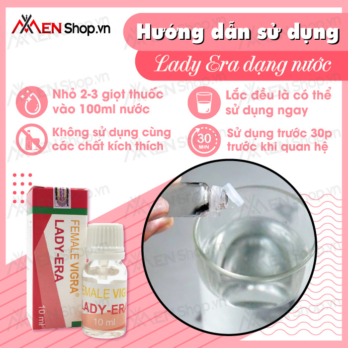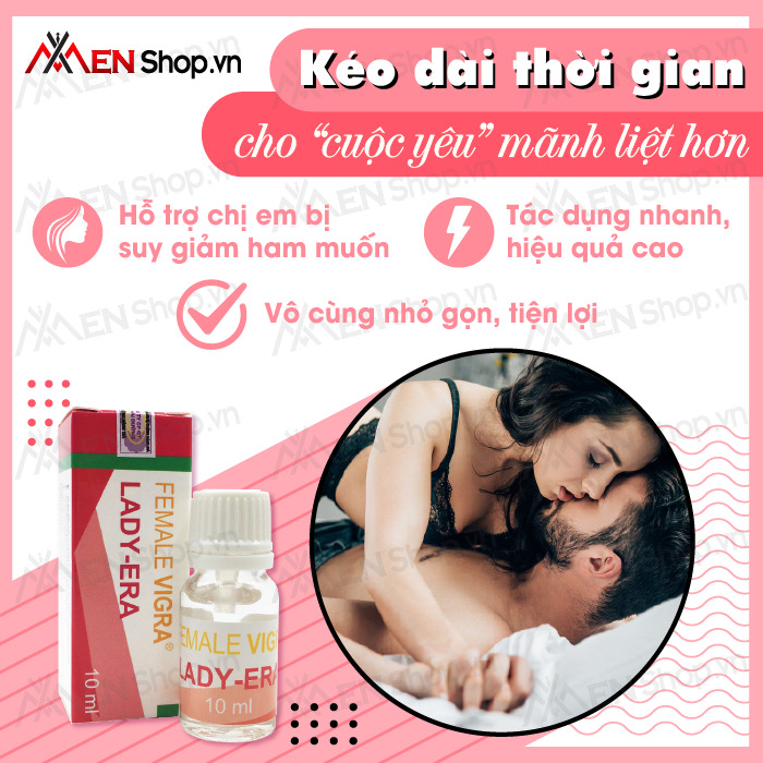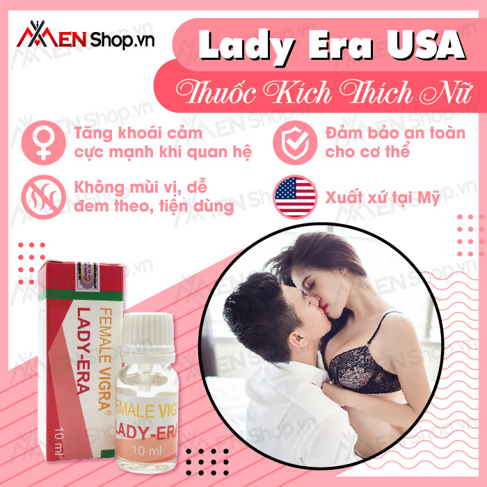 - Thuốc kích dục nữ giới Lady Era dạng nước là sản phẩm rất được ưa chuộng tại thị trường Mỹ và bắt đầu phổ biến rộng rãi tại Việt Nam trong những năm gần đây. Thuốc có công dụng hỗ trợ cải thiện chuyện chăn gối với chồng cho các chị em phụ nữ.